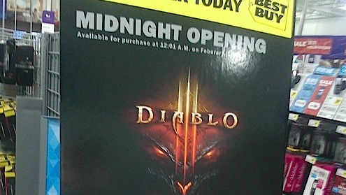 According to Best Buy and Joystiq, Diablo III is heading to stores at the beginning of next month. A display spotted at a Best Buy shop shows Diablo III being advertised for a midnight launch on the 1st February. Also Best Buy’s website lists the same date.