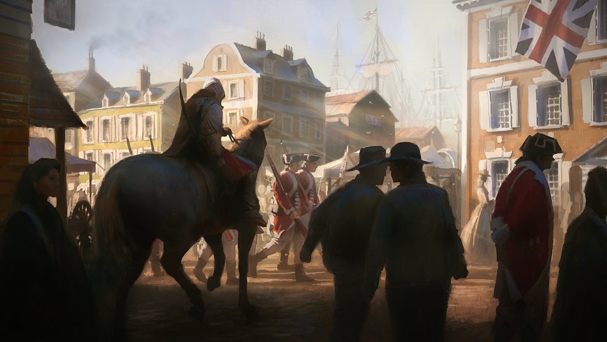 From Wikipedia: “Set in Colonial America, the Assassin-Templar war has become involved in the American Revolution. As series’ protagonist Desmond Miles, the player controls a young half-English, half-Mohawk man named Connor Kenway who is drawn into the fight against tyranny when his home is attacked by colonists. Over the course of the game, Kenway will encounter historical figures including George Washington, Benjamin Franklin, Thomas Jefferson, Charles Lee, Israel Putnam, General Lafayette, John Pitcairn, and William Prescott. The story will span 30 years of Connor’s life, from 1753 to 1783. Boston, New York, and Philadelphia will be cities that you can explore with new quests and gameplay.”