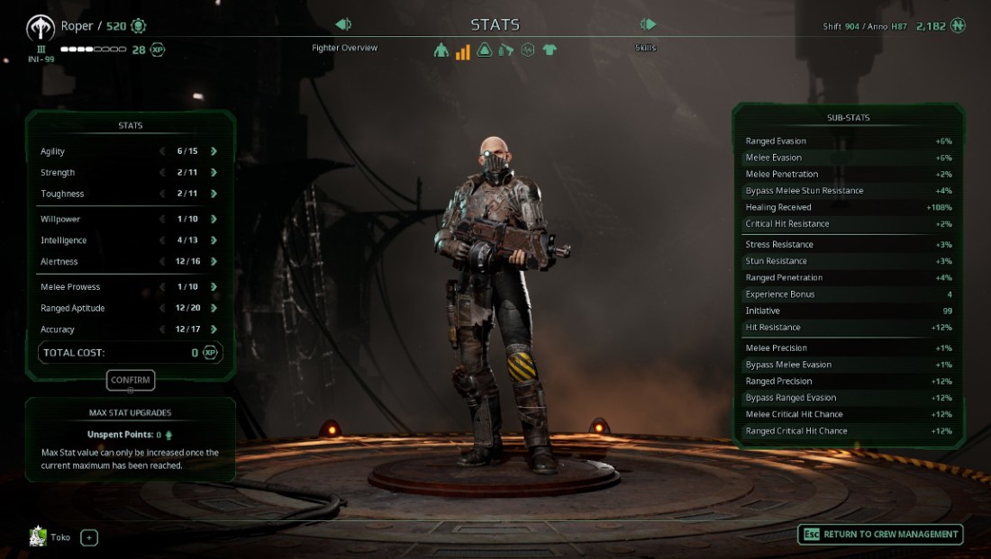 Op #2: Roper ranked up twice, gained no personas. He survived all levels except one, gained six kills, zero injuries, and two MVPs.