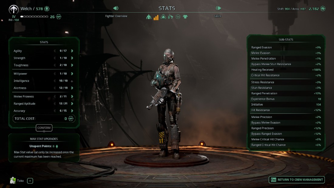 Op #2: Sweeney ranked up twice, gained Patient, Technician personas. She survived all levels except one, gained eight kills, zero injuries, and zero MVPs.