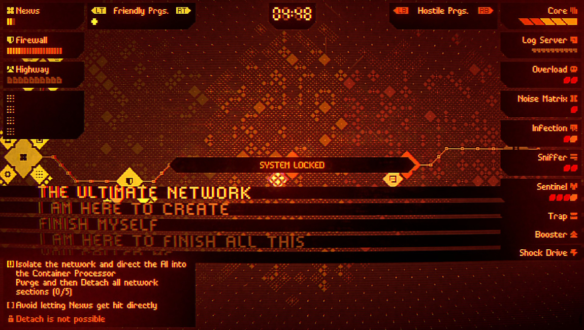 The game sells the illusion of being a hacker. Multitasking tasks such as deleting and downloading data while you bypass several security systems and removing multiple attacks are immersive. As I played most of the game with a keyboard, I felt like Stanley Jobson (Hugh Jackman) from the film Swordfish. It does recommend you use a controller, and I found that by the last few drops, a controller is a necessity.