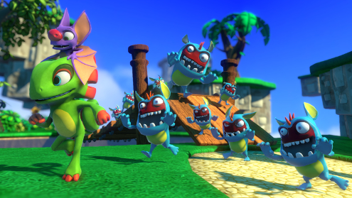 New video Game developer Playtonic Games (Founded 10th February 2015) announced recently that a team of ex-Rare veterans would be working on a spiritual successor to Banjo-Kazooie with “Project Ukelele”. The game has tuned out to be called Yooka-Laylee, and is similar to the previous franchise as the title refers to the game two main characters. Instead of Banjo the Honey Bear and Kazooie the Red-Crested Breegull, players will now control Yooka the green bloke with no pants and Laylee the wise cracking lady-bat with a big nose.